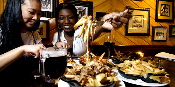 It appears poutine is on the rise. It's reported to be flourishing in New York (here is an article from the New York Times on itperhaps you need to be registered to access it. But here are some pix from the story, and from the loving aspect of them you can see that the article is flattering. [rpg 2007]