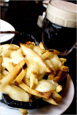 It appears poutine is on the rise. It's reported to be flourishing in New York (here is an article from the New York Times on itperhaps you need to be registered to access it. But here are some pix from the story, and from the loving aspect of them you can see that the article is flattering. [rpg 2007]